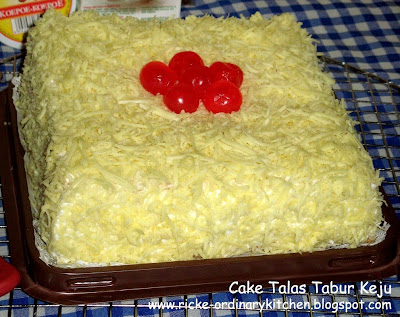 Resep asli didapat dari resep 'Cheesy Creamy Love Me' by Mba Rachmah Setyawati. Hanya aku ga menggunakan ganache coklat, tapi dipoles whipped cream, tabur keju parut dan pinggirannya diberi almond slice panggang. Ngeju abisss!